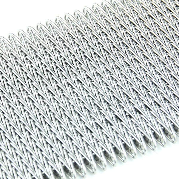壓制成形的鐵基、銅基及其它相關(guān)粉末冶金制品的生產(chǎn)中很重要的一道工序就是經(jīng)過輸送網(wǎng)帶運(yùn)輸進(jìn)燒結(jié)爐中加熱,對(duì)產(chǎn)品進(jìn)行燒結(jié)加熱,這里燒結(jié)爐內(nèi)的溫度高達(dá)1200多度,需要使用的是高溫網(wǎng)帶,我們采用的是日本新日鐵314材質(zhì),耐高溫1250度,編織方法采用邊緣延長(zhǎng)彎鉤并入繞絲的處理方法,增強(qiáng)網(wǎng)帶的抗拉伸能力,方可承受較重的物料,在高溫中不易變形,邊緣更牢固,不易撕裂。